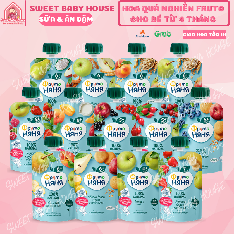 Combo hoa quả nghiền Fruto Nga 90g, trái cây nghiền cho bé ăn dặm từ 4 tháng