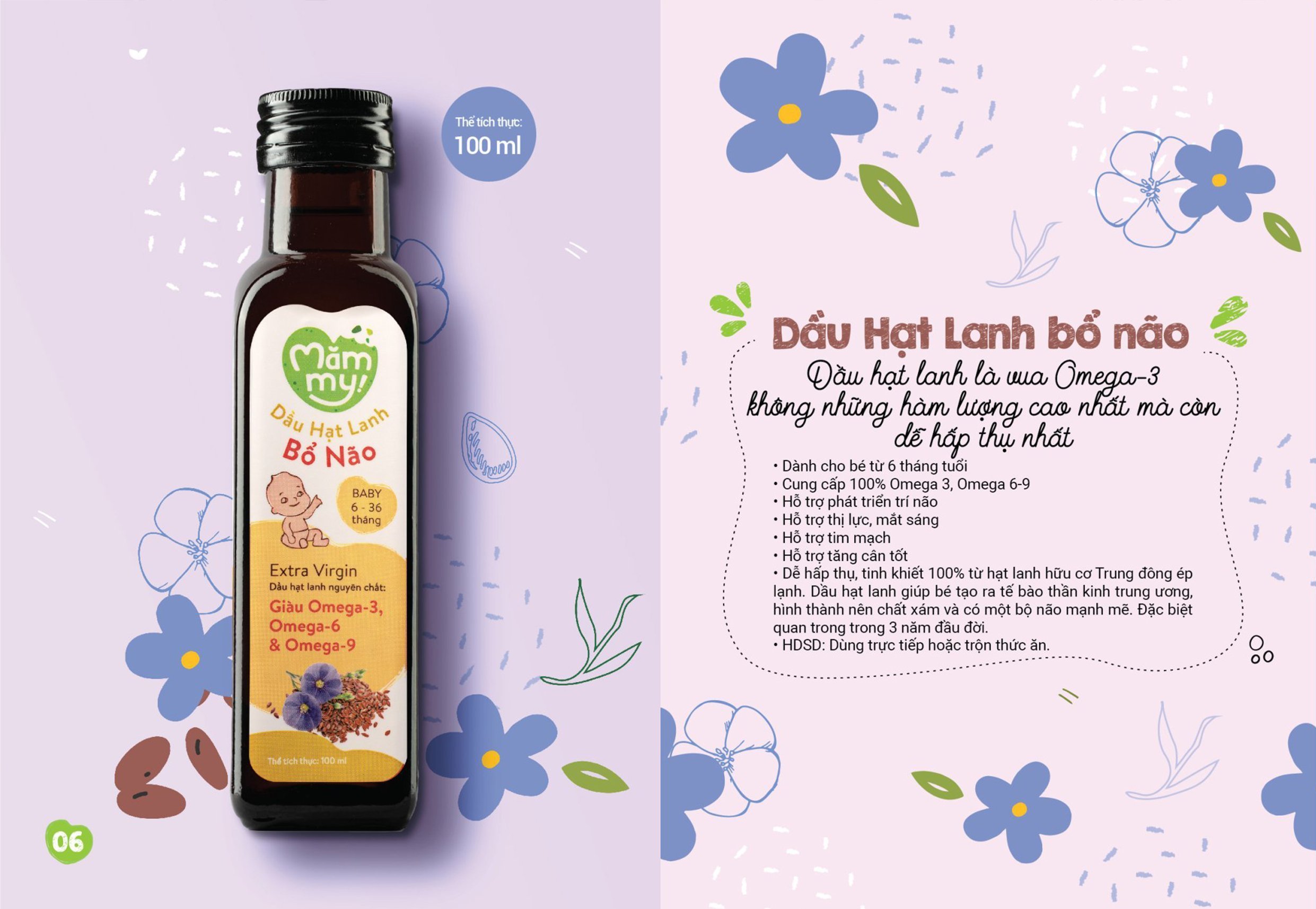 Dầu Ăn Dặm Bổ Não Hạt Lanh MĂMMY - Cung Cấp Omega 3 và Dinh Dưỡng cần thiết cho trẻ ăn dặm