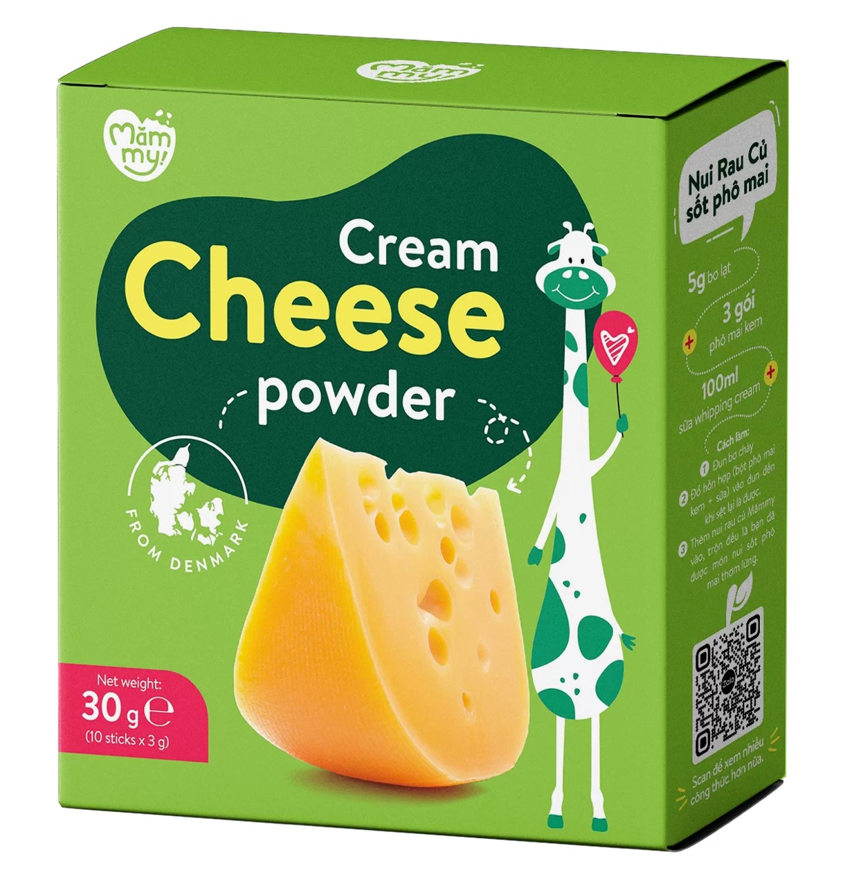 - Thành phần: Phô mai dạng bột - Cream cheese Powder nhập khẩu Đan Mạch, bột kem không sữa, bột kem sữa.