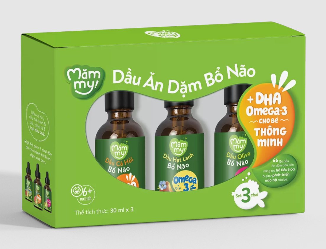 - Bộ 3 dầu ăn dặm bổ não của Mămmy cung cấp cho bé nguồn DHA và Omega - 3 tinh khiết nhất từ Cá hồi hoang dã Na Uy, Hạt lanh Trung Đông và Qủa Olive tốt lành của nước Ý. Dầu ăn dặm bổ não Mămmy là loại dầu ăn dặm đặc biệt có bổ sung thêm DHA và OMEGA 3 hàm lượng chuẩn, dạng tinh khiết và dễ hấp thụ cho bé. Giúp bé tạo chất xám và phát triển não bộ thông minh ngay từ ngày đầu tiên trong đời.